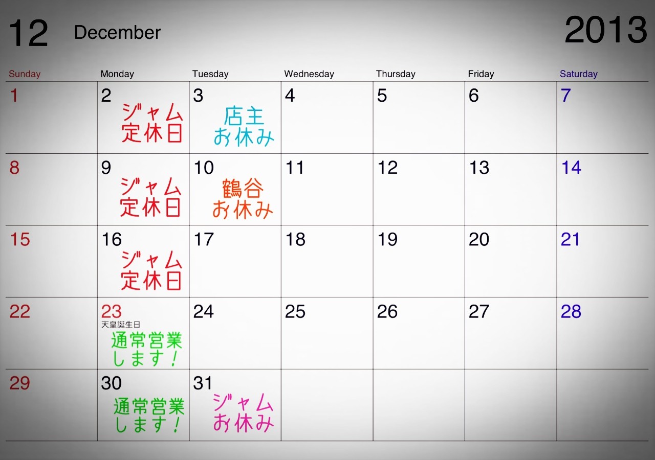 明日も通常営業でがんばります! ジャムノンストップなんです。 2013年12月22日 22:05 「ニュースレター」カテゴリの最新記事 「告知」カテゴリの最新記事 < 前の記事次の記事 > コメント コメントフォーム 名前 コメント 評価する リセット リセット 顔 星 投稿する 情報を記憶 トラックバック